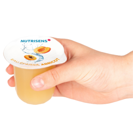 Cette eau gélifiée (ou épaissie) abricot édulcorée est disponible en pot ergonomique pour faciliter stabilité, prise en main et cuillerabilité.